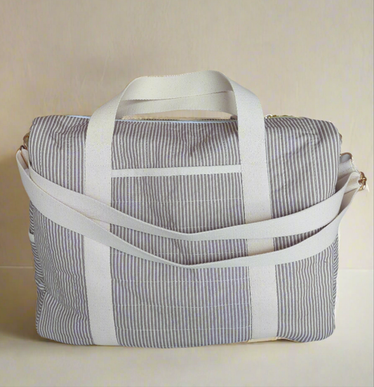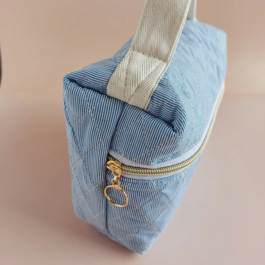 Quilted Vanity Bag | Blue Microstripes
